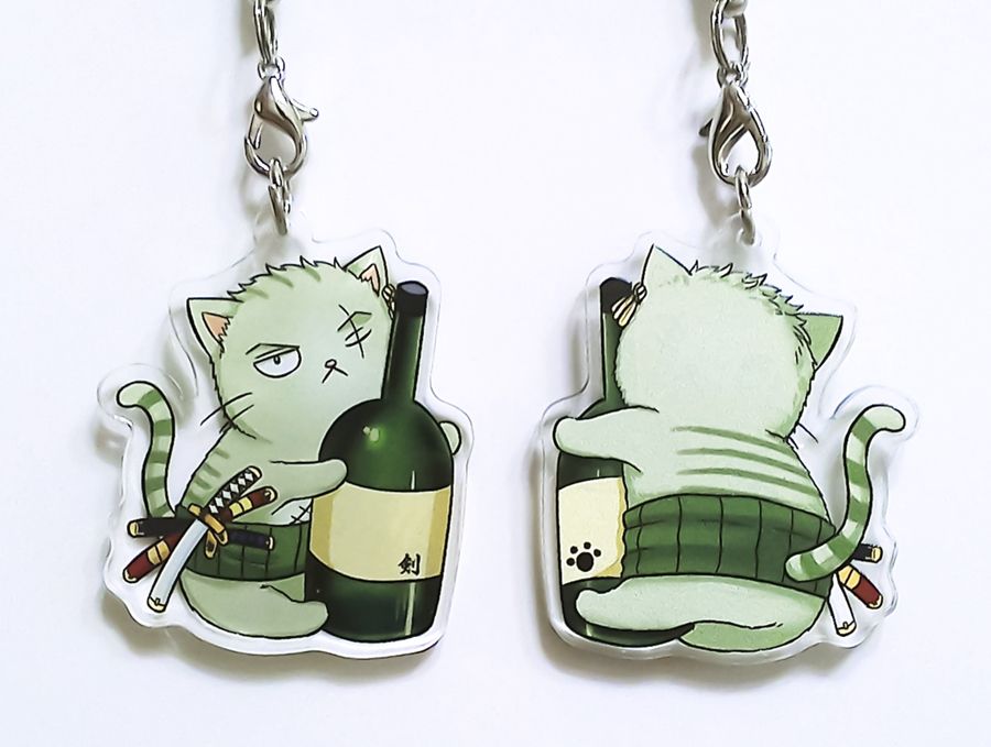 One Piece Cat Acrylic Charm- Zoro with Booze